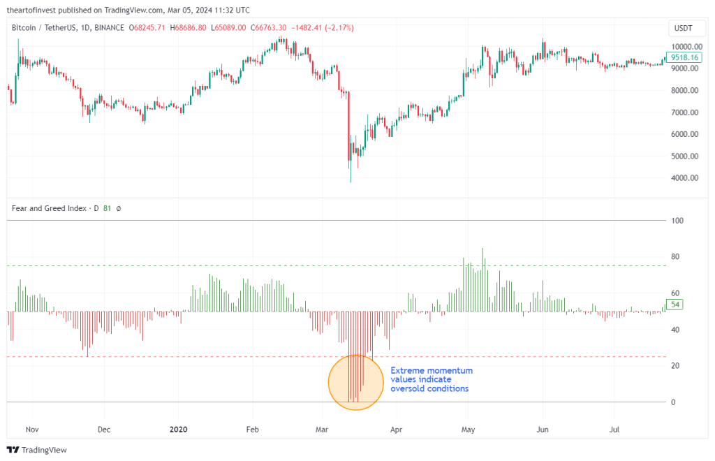 结合价格动量和恐惧与贪婪指数可以为股票或加密货币市场的投资者提供有价值的确认信号。使用方法如下: